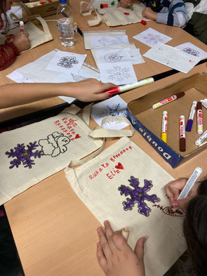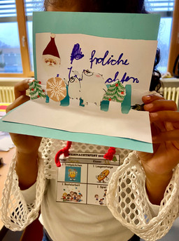 "Ich fand das Weihnachtsfest cool, weil es hat sehr viel Spaß gemacht und wir konnten sehr viele Sachen basteln und die Polizei war auch da und wir konnten dort etwas ausmalen. Wir konnten auch Kerzen basteln und ich habe eine Tasche bemalt." Nisa, 4c